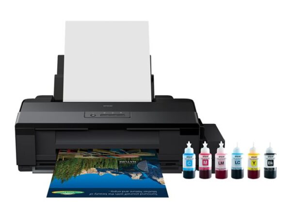 Imprimante A3+ six couleurs compacte pour les particuliers et les bureaux soucieux de maîtriser leurs dépenses, le modèle L1800 imprime des photos en quelques 191 secondes1. Son système de réservoir d’encre grande capacité permet d’imprimer 1 500 photos2 sans recharge. Avec un minimum d’intervention, elle fournit des impressions photos et de documents couleur sans problème et à coût réduit pour les particuliers, les photographes et les bureaux ayant d’importants volumes d’impression.